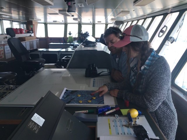 Wache auf der Brücke: Während der „Bridge-Watch“ koordinieren wir die Teams auf dem Eis, sind immer über das VHF-Radio verfügbar und somit Hauptsprechzentrale. Über ein sogenanntes Trip-Log-System haben wir über einen Laptop den Überblick, wer und wie viele von uns das Schiff verlassen haben und zurückgekehrt sind. Jedes Team muss sich beim Verlassen der Gangway und bei der Ankunft wieder bei bei der Brückenwache ab- oder anmelden. Da die Brücke der höchste Punkt vom Schiff ist, haben wir von dort oben eine gute Übersicht über die Teams (solange es nicht zu neblig ist). Wir werden von frei verfügbaren Wissenschaftlern als „Bridge Lookout“ unterstützt, die uns beim Ausschau nach Eisbären unterstützen. Wenn das Wetter sich ändert und es zu neblig wird, benachrichtigen wir die Expeditionsleitung, die situativ darüber entscheidet, ob wir die Teams „nach Hause“ zurückholen.